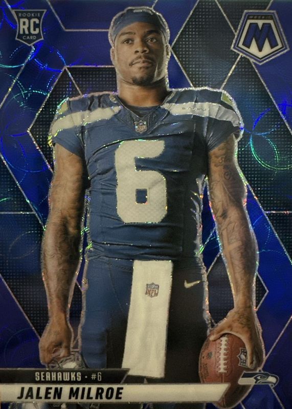 2025 PANINI MOSAIC🏈JALEN MILROE BLUE SCOPE PRIZM RC #283🔥COLOR MATCH -SEAHAWKS