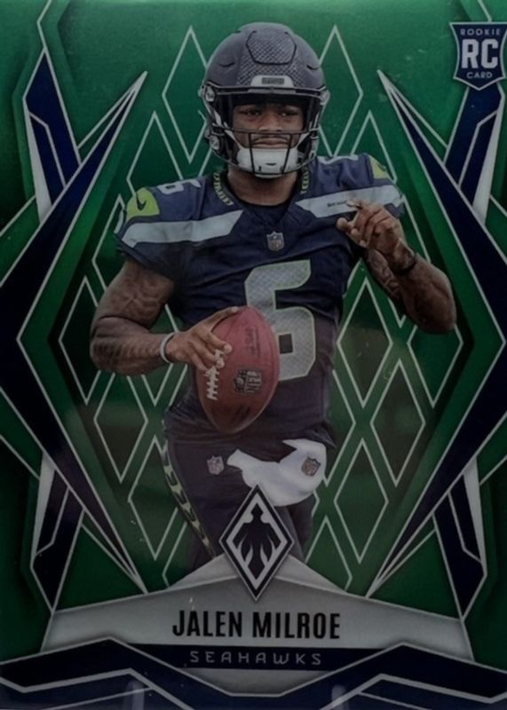 The Jalen Milroe 2025 Phoenix #151 Green Seismic /25 Rookie card in Raw condition has not changed in price in the last 30 days and was last sold for $20.50 .