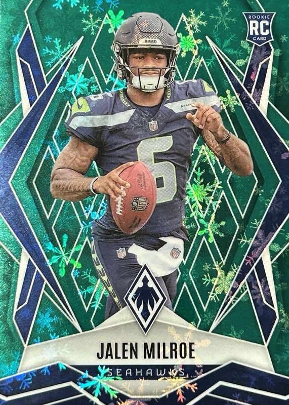The Jalen Milroe 2025 Phoenix #151 Green Winter /149 Rookie card in Raw condition has moved up $0.25 (+3.3%) in the last 30 days and was last sold for $7.75 .