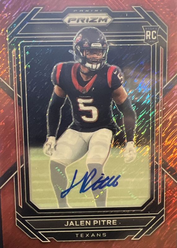 2022 Panini Prizm JALEN PITRE Rookie Red Shimmer Auto /35 Texans RC #383