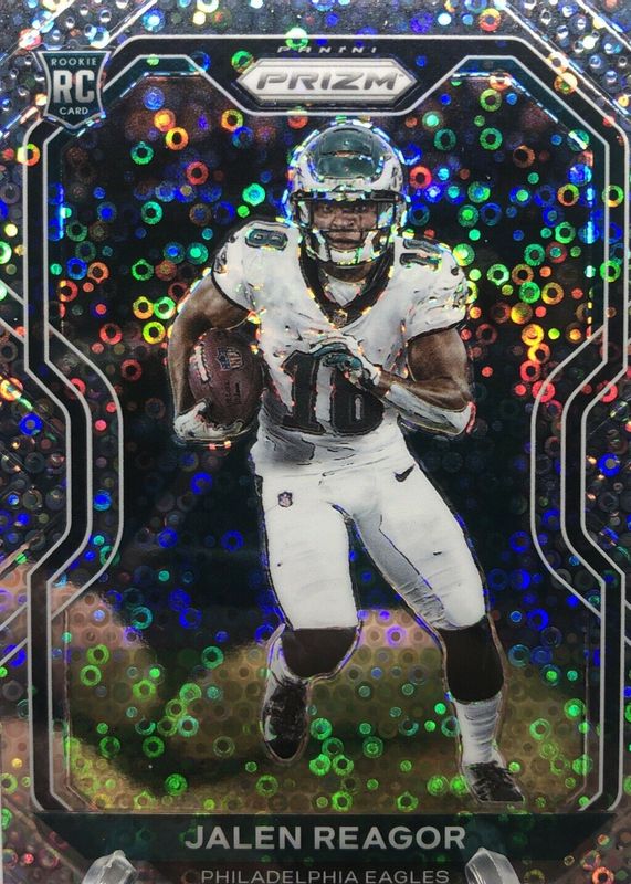 This card is 1 of 58 Jalen Reagor's card variations in the 2020 Prizm set being tracked by Sports Card Investor, including Base, Disco, Green, Lazer, and Light Blue.