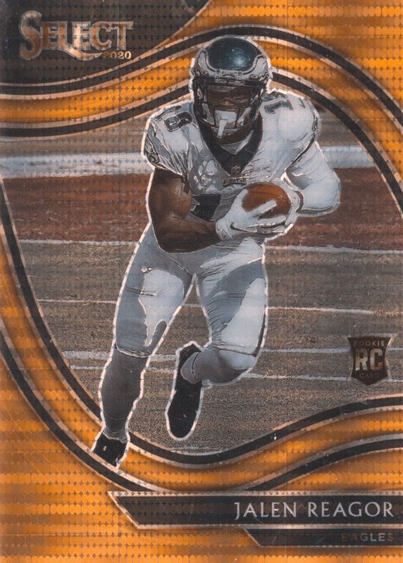 The Jalen Reagor 2020 Select #368 Field Level FOTL Neon Orange Pulsar /7 Rookie card in Raw condition has not changed in price in the last 30 days and was last sold for $12.00 .