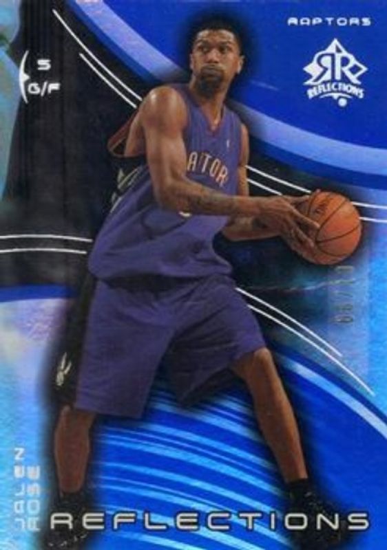 The Jalen Rose 2003 Upper Deck Triple Dimensions #83 Reflections - Sapphire /10 card is 1 of 9 Jalen Rose's card variations in the 2003 Upper Deck Triple Dimensions set being tracked by Sports Card Investor, including Base /999, Reflections, Standout Sigs, UD Promos, and Reflections - Ruby /500.