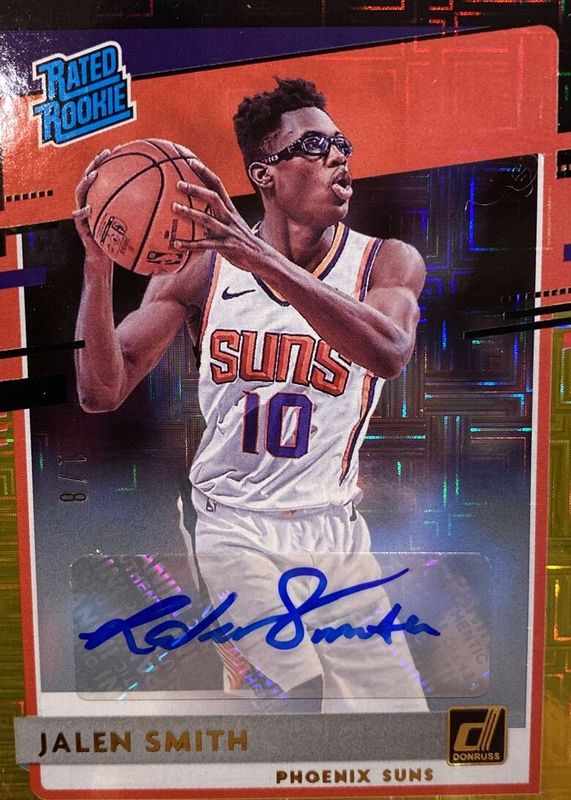 The Jalen Smith 2020 Donruss #230 Rated Rookie Signatures - Choice Black Gold /8 card in Raw condition has not changed in price in the last 30 days and was last sold for $40.00 .