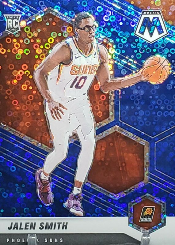 The Jalen Smith 2020 Mosaic #228 Fast Break Blue /85 Rookie card in Raw condition has not changed in price in the last 30 days and was last sold for $27.00 .