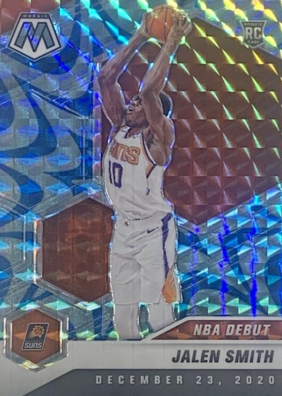 The Jalen Smith 2020 Mosaic #275 NBA Debut - Reactive Blue Rookie card in Raw condition has not changed in price in the last 30 days and was last sold for $2.88 .