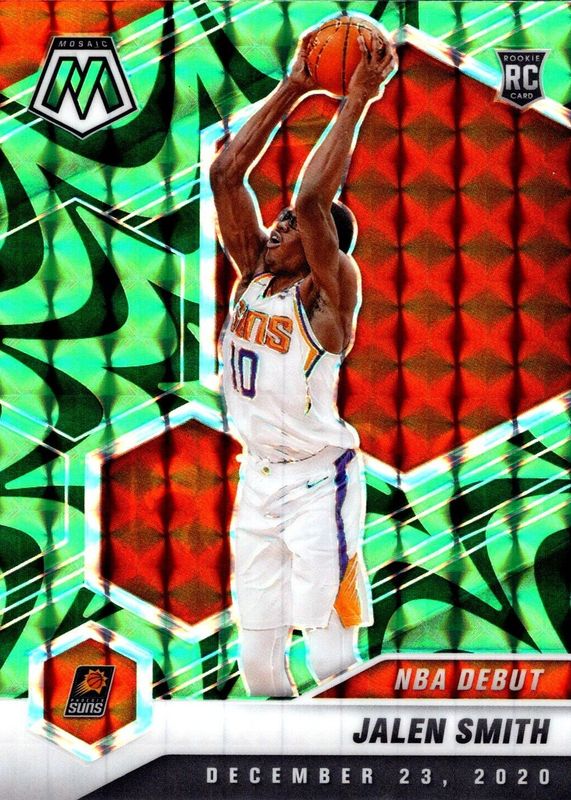 The Jalen Smith 2020 Mosaic #275 NBA Debut - Reactive Green Rookie card in Raw condition has not changed in price in the last 30 days and was last sold for $1.50 .
