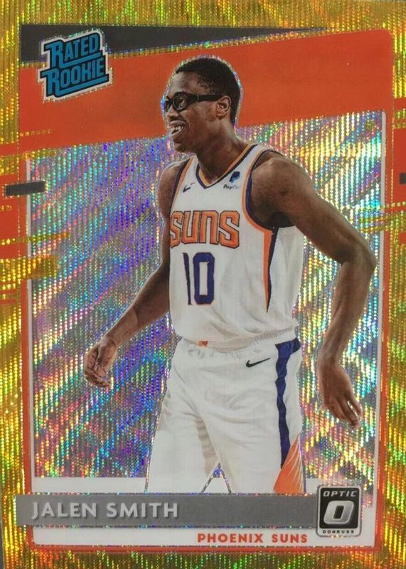 The Jalen Smith 2020 Optic #160 Gold Wave Rookie card in Raw condition has not changed in price in the last 30 days and was last sold for $5.50 .