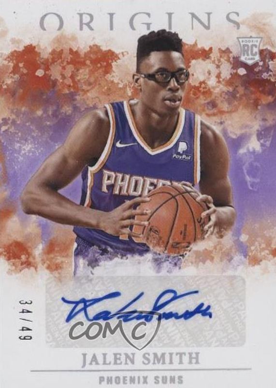The Jalen Smith 2020 Origins #RA-SMI Rookie Autographs - FOTL Purple /49 card in Raw condition has not changed in price in the last 30 days and was last sold for $15.50 .