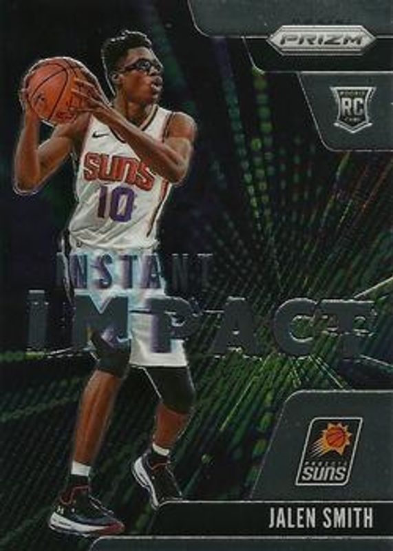 The Jalen Smith 2020 Prizm #7 Instant Impact Rookie card is 1 of 77 Jalen Smith's card variations in the 2020 Prizm set being tracked by Sports Card Investor, including #300b Base, #300 Choice Blue Yellow Green, #300 Fast Break, #300b Fast Break, and #300 Green.