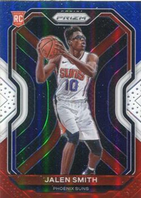 The Jalen Smith 2020 Prizm #300 Red White Blue Rookie card is 1 of 77 Jalen Smith's card variations in the 2020 Prizm set being tracked by Sports Card Investor, including #300b Base, #300 Choice Blue Yellow Green, #300 Fast Break, #300b Fast Break, and #300 Green.