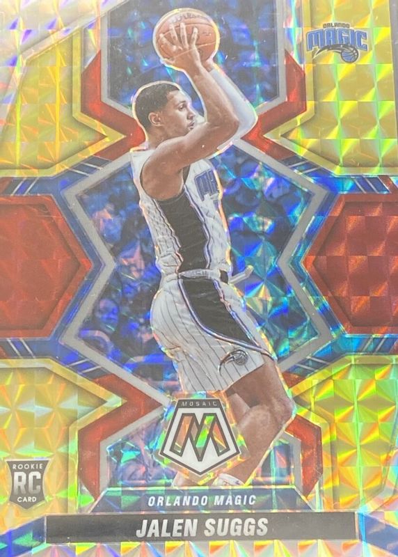 Auctions Ending Soon for Jalen Suggs 2021 Mosaic #209 Choice Fusion Red & Yellow /88 Rookie RAW