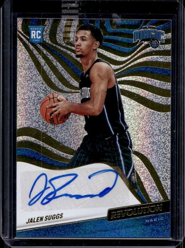 The Jalen Suggs 2021 Revolution #RA-JSG Rookie Autographs card is 1 of 43 Jalen Suggs' card variations in the 2021 Revolution set being tracked by Sports Card Investor, including Base, Asia Red, Astro, Chinese New Year, and Fractal.