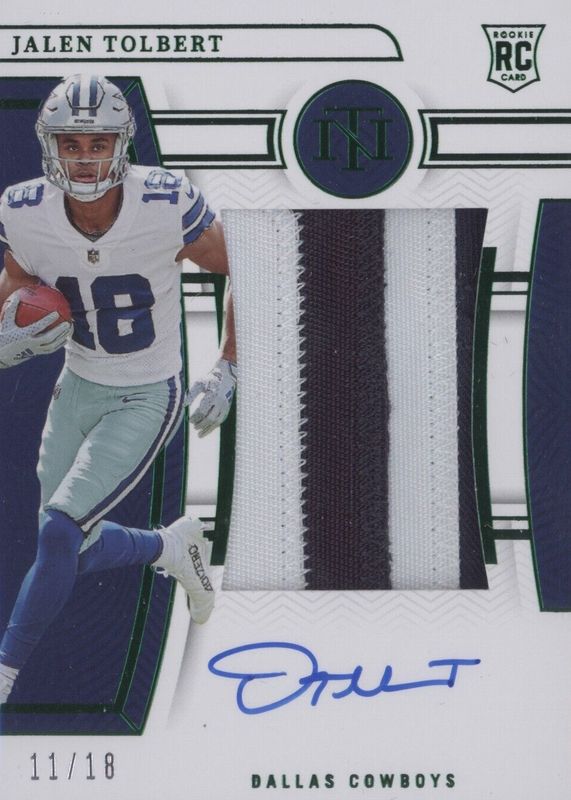 Jalen Tolbert 2022 Panini National Treasures Green Rookie Patch Auto /18 Cowboys