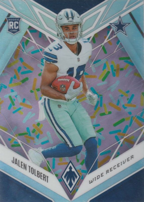 The Jalen Tolbert 2022 Phoenix #131 Sprinkles /(SSP) Rookie card in Raw condition has not changed in price in the last 30 days and was last sold for $10.50 .