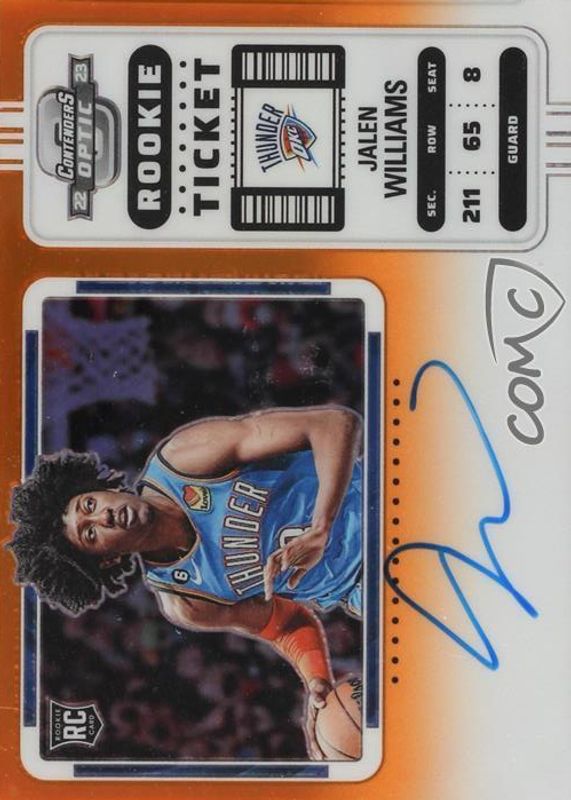 Best Prices Available For Sale of Jalen Williams 2022 Contenders Optic #112 Rookie Ticket Auto Variation - Orange /25
