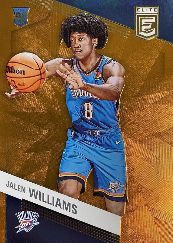 The Jalen Williams 2022 Elite #213 Orange Rookie card in Raw condition has not changed in price in the last 30 days and was last sold for $4.78 .