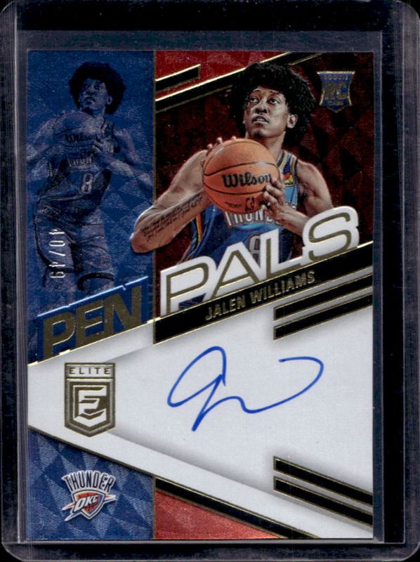 The Jalen Williams 2022 Elite #PP-JLW Pen Pals - Red /49 Rookie card is 1 of 35 Jalen Williams' card variations in the 2022 Elite set being tracked by Sports Card Investor, including Base, Asia Exclusive, Asia Hyper Red & Green, Aspirations (/92), and Orange.