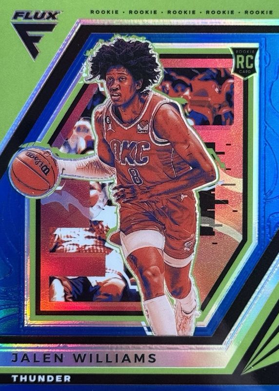 This card is 1 of 60 Jalen Williams' card variations in the 2022 Flux set being tracked by Sports Card Investor, including Base, Red, Red Cracked Ice, Silver, and Silver Mojo.