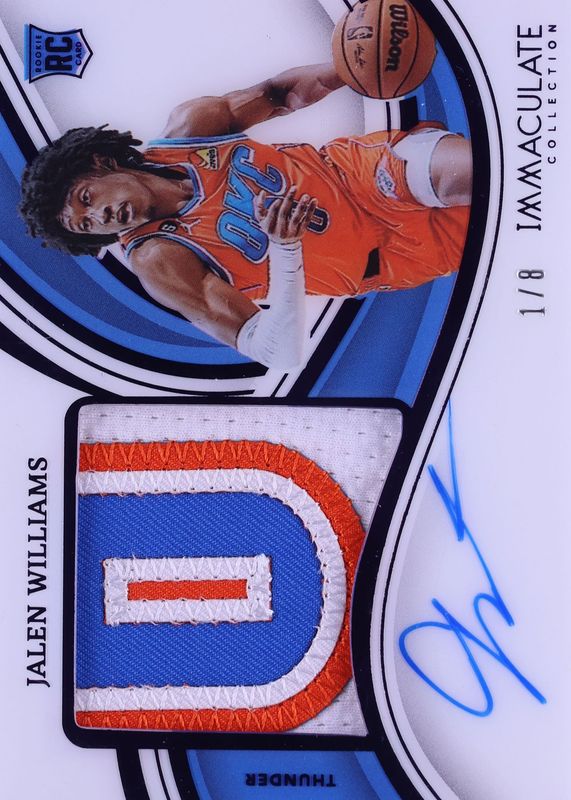 The Jalen Williams 2022 Immaculate #PPA-JWL Premium Patch Autographs - FOTL (/8) Rookie card in Raw condition has not changed in price in the last 30 days and was last sold for $2,520.00 .