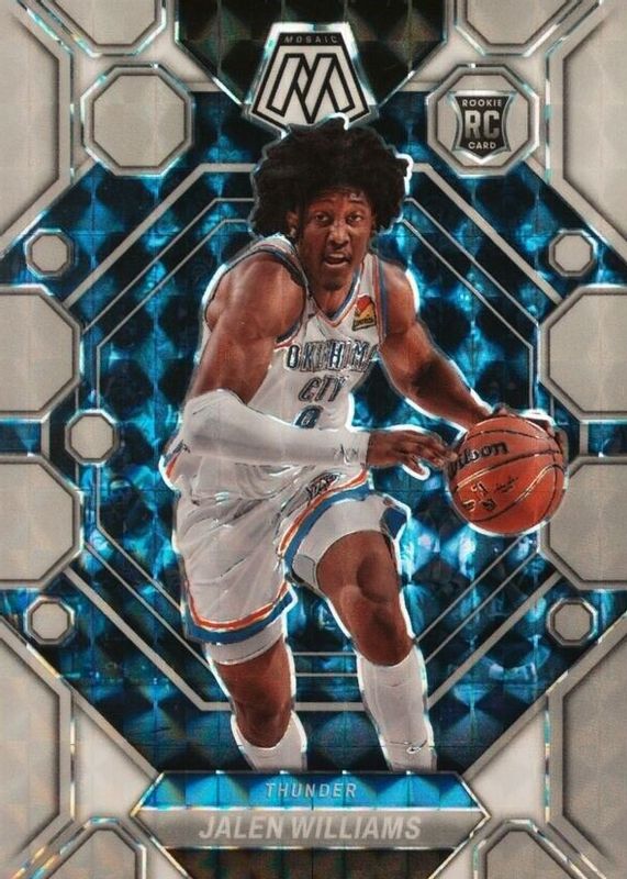 This card is 1 of 66 Jalen Williams' card variations in the 2022 Mosaic set being tracked by Sports Card Investor, including Base, Blue Wave, Choice Red & Green, Fast Break, and Green.
