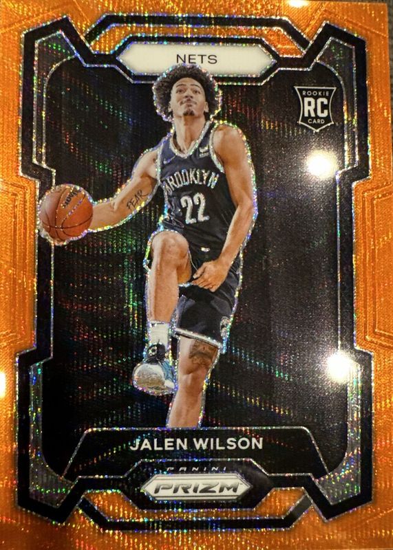 The Jalen Wilson 2023 Prizm #128 Orange Wave /60 Rookie card in Raw condition has not changed in price in the last 30 days and was last sold for $63.00 .