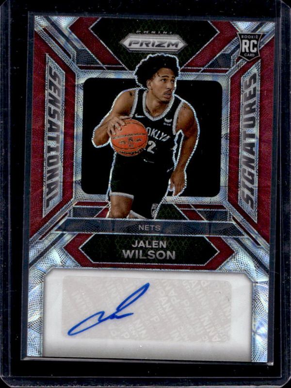 The Jalen Wilson 2023 Prizm #SS-LS Sensational Signatures - Choice /88 Rookie card is 1 of 95 Jalen Wilson's card variations in the 2023 Prizm set being tracked by Sports Card Investor, including Base, Blue Wave, Choice Blue Yellow Green, Fast Break, and Green.