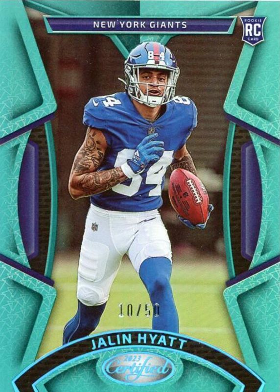 Jalin Hyatt 2023 Certified #126 Mirror Teal /50 Rookie RAW Price Guide