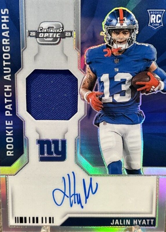 2023 Contenders Optic Jalin Hyatt Rookie Patch Auto /75 MEM RC New York Giants