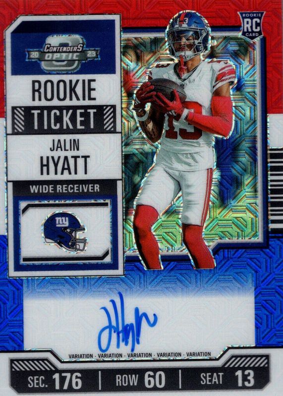 Jalin Hyatt 2023 Contenders Optic #115 Rookie Ticket Auto Variation - Red White Blue /13 RAW Price Guide
