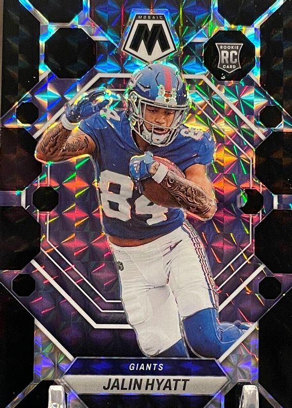 This card is 1 of 94 Jalin Hyatt's card variations in the 2023 Mosaic set being tracked by Sports Card Investor, including Base, NFL Debut, Choice Red & Green, Green, and Mosaic.