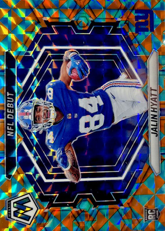 The Jalin Hyatt 2023 Mosaic #ND-17 NFL Debut - Tessellation /15 Rookie card in Raw condition has not changed in price in the last 30 days and was last sold for $29.00 .