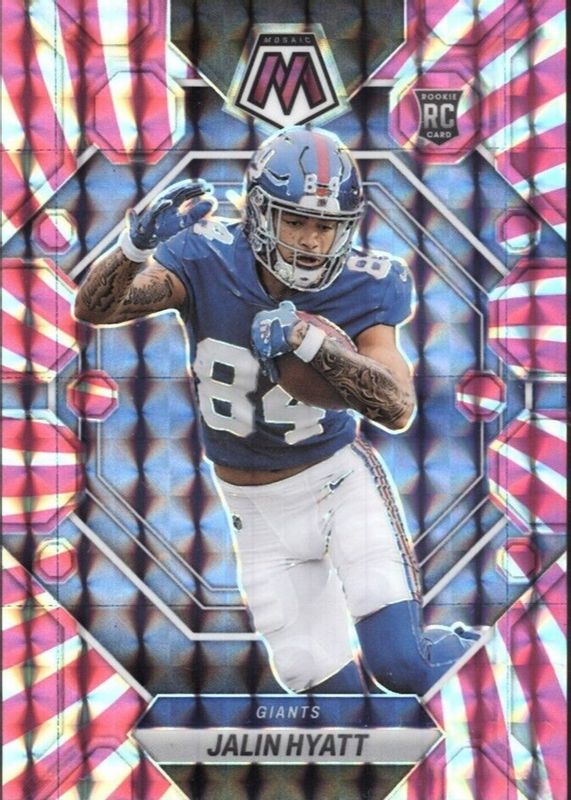 This card is 1 of 94 Jalin Hyatt's card variations in the 2023 Mosaic set being tracked by Sports Card Investor, including Base, NFL Debut, Choice Red & Green, Green, and Mosaic.