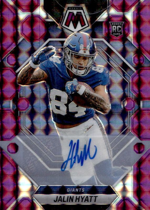 The Jalin Hyatt 2023 Mosaic #329 Rookie Autographs - Purple (/49) card in Raw condition has not changed in price in the last 30 days and was last sold for $10.19 .