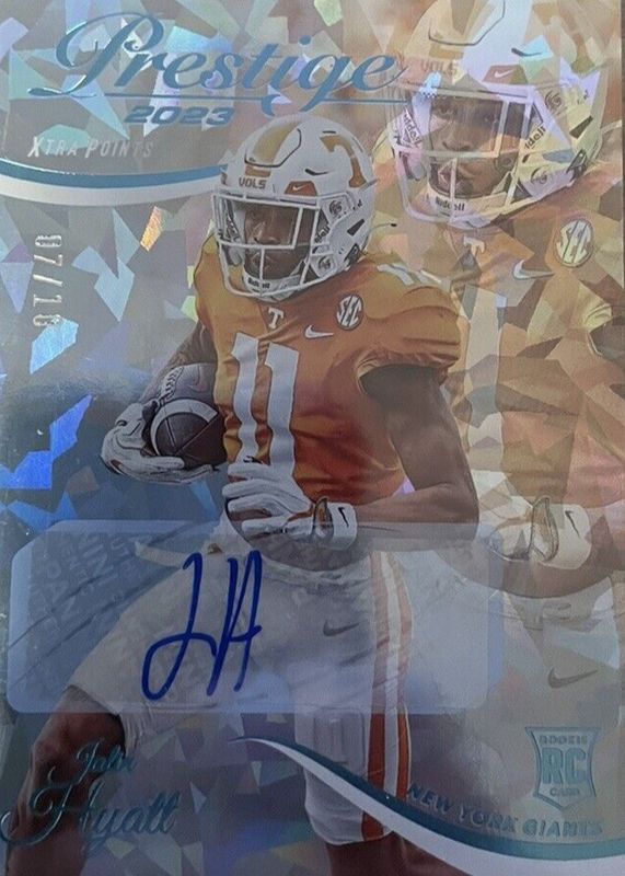 This card is 1 of 12 Jalin Hyatt's card variations in the 2023 Prestige set being tracked by Sports Card Investor, including Base, Draft Day Signatures, NFL Passport Signatures, Xtra Points Signatures - Red /199, and Xtra Points Signatures - Blue /99.