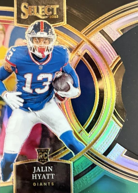 2023 Panini Select - #173 Jalin Hyatt (RC) - Black & Green Die-Cut Prizm Giants