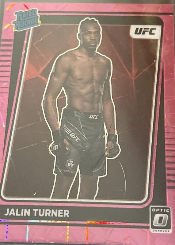 The Jalin Turner 2022 Optic UFC #114 Pink Velocity /79 Rookie card in Raw condition has not changed in price in the last 30 days and was last sold for $8.98 .