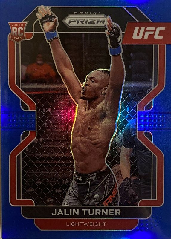 The Jalin Turner 2022 Prizm UFC #164 Blue /199 Rookie card in Raw condition has not changed in price in the last 30 days and was last sold for $5.99 .
