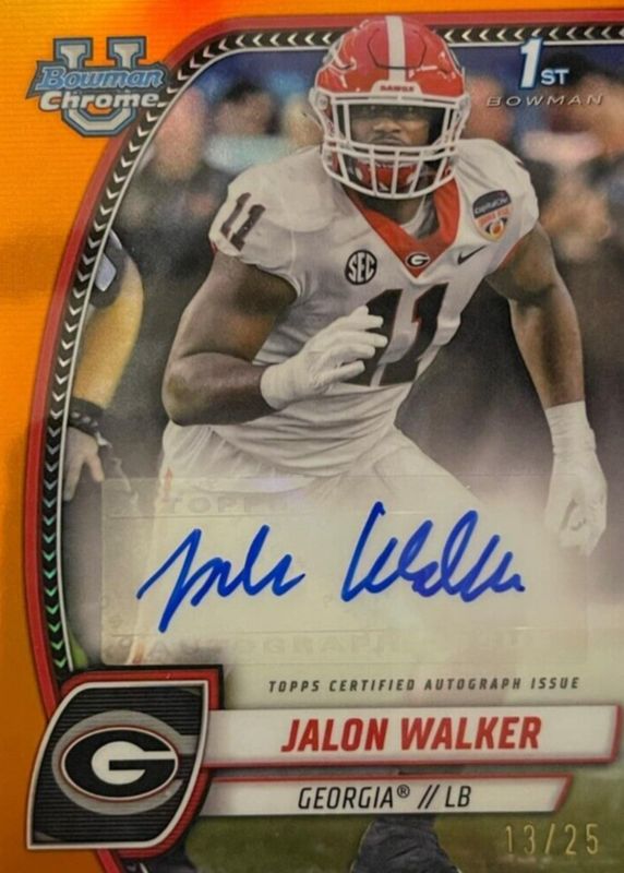 2024 Bowman Chrome University Jalon Walker Orange Refractor Auto /25 Georgia