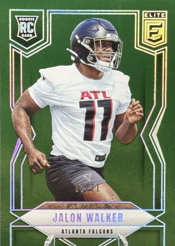The Jalon Walker 2025 Elite #165 Status (/11) Rookie card in Raw condition has not changed in price in the last 30 days and was last sold for $19.50 .