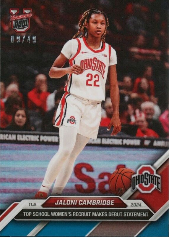 2024-25 Bowman U Now Blue Basketball #4 Jaloni Cambridge Pre-Rookie Card OSU /49