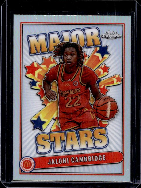 The Jaloni Cambridge 2024 Topps Chrome McDonald's All-American #SES-JAC Major Stars - Refractor card is 1 of 112 Jaloni Cambridge's card variations in the 2024 Topps Chrome McDonald's All-American set being tracked by Sports Card Investor, including #64 Base, #14 Base, #14 Blue RayWave Refractor, #64 Blue RayWave Refractor, and #14 McDonald's Logo Refractor.
