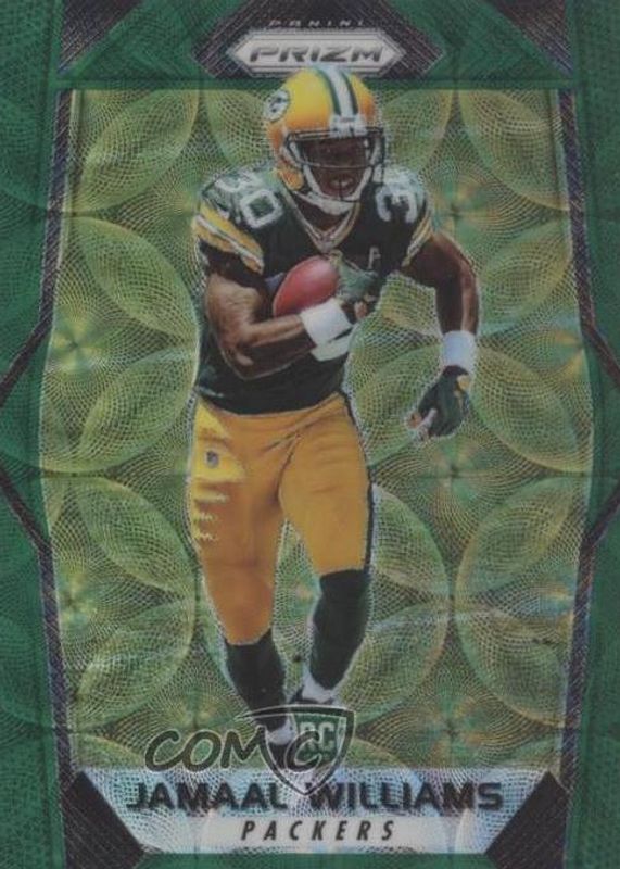 This card is 1 of 20 Jamaal Williams' card variations in the 2017 Prizm set being tracked by Sports Card Investor, including Disco, Green, Pink, Red White Blue, and Silver.