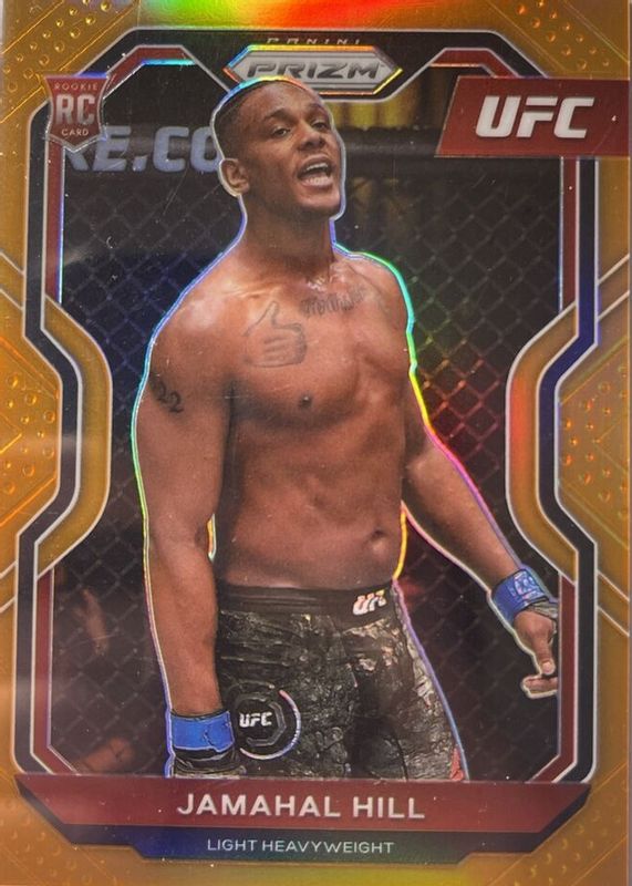 The Jamahal Hill 2021 Prizm UFC #42 Orange /99 Rookie card in Raw condition has not changed in price in the last 30 days and was last sold for $11.50 .