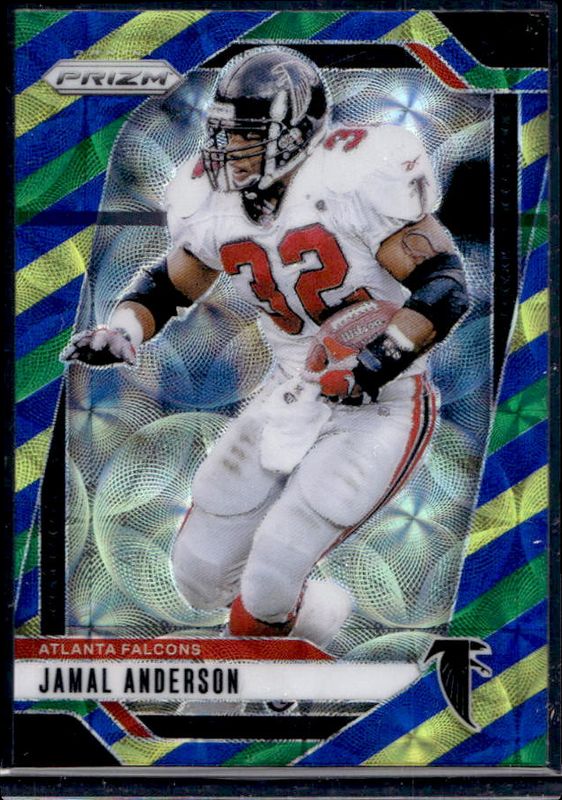 The Jamal Anderson 2024 Prizm #18 Choice Blue Yellow Green card is 1 of 84 Jamal Anderson's card variations in the 2024 Prizm set being tracked by Sports Card Investor, including Base, Choice Silver, Disco, Green, and Green Ice.