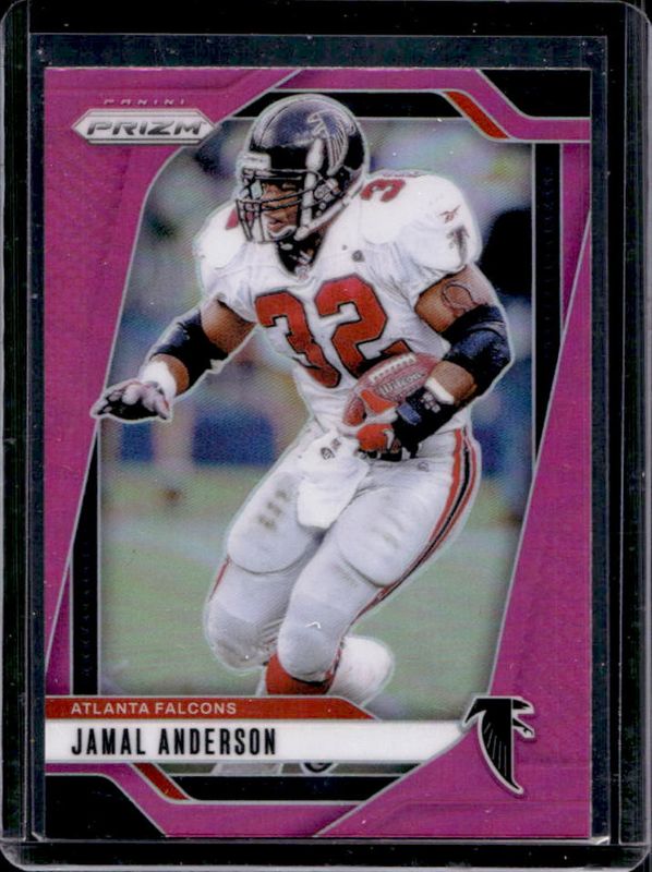 The Jamal Anderson 2024 Prizm #18 Pink card is 1 of 84 Jamal Anderson's card variations in the 2024 Prizm set being tracked by Sports Card Investor, including Base, Choice Blue Yellow Green, Choice Silver, Disco, and Green.