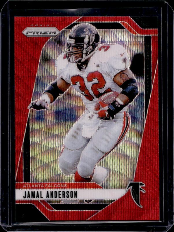 The Jamal Anderson 2024 Prizm #18 Red Wave /149 card is 1 of 84 Jamal Anderson's card variations in the 2024 Prizm set being tracked by Sports Card Investor, including Base, Choice Blue Yellow Green, Choice Silver, Disco, and Green.