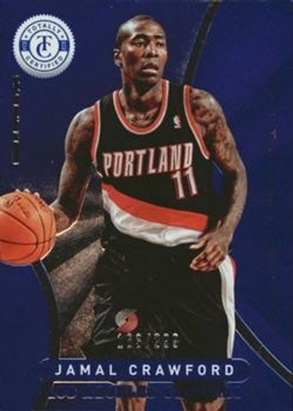 The Jamal Crawford 2012 Totally Certified #48 Totally Blue /299 card is 1 of 27 Jamal Crawford's card variations in the 2012 Totally Certified set being tracked by Sports Card Investor, including Base, Totally Red /499, Totally Gold /25, Totally Green /5, and Printing Plate Black /1.
