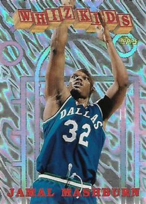The Jamal Mashburn 1995 Topps #WK10 Whiz Kids card is 1 of 4 Jamal Mashburn's card variations in the 1995 Topps set being tracked by Sports Card Investor, including Mystery Finest, Mystery Finest - Refractor, and Power Boosters.