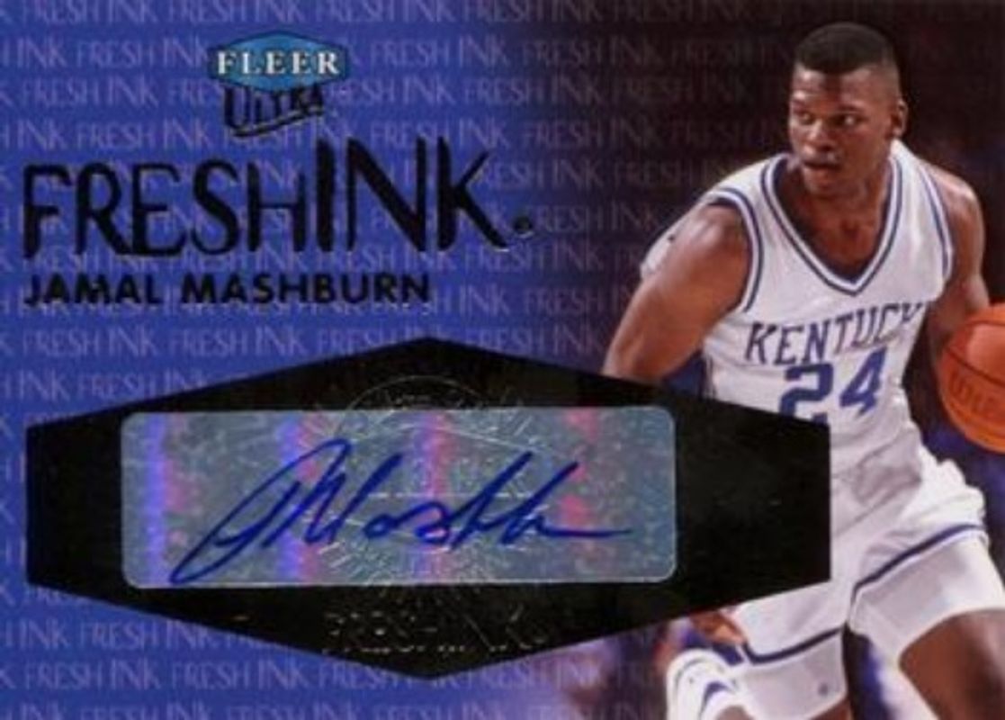 The Jamal Mashburn 2012 Fleer Retro #UFI-JM Ultra Fresh Ink card is 1 of 18 Jamal Mashburn's card variations in the 2012 Fleer Retro set being tracked by Sports Card Investor, including Base, Autographs, EX-2001, EX-2001 - Essential Credentials Future, and EX-2001 - Essential Credentials Now.
